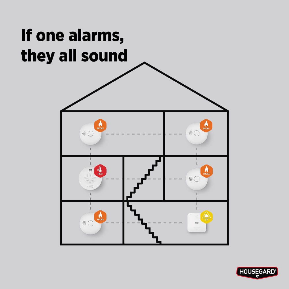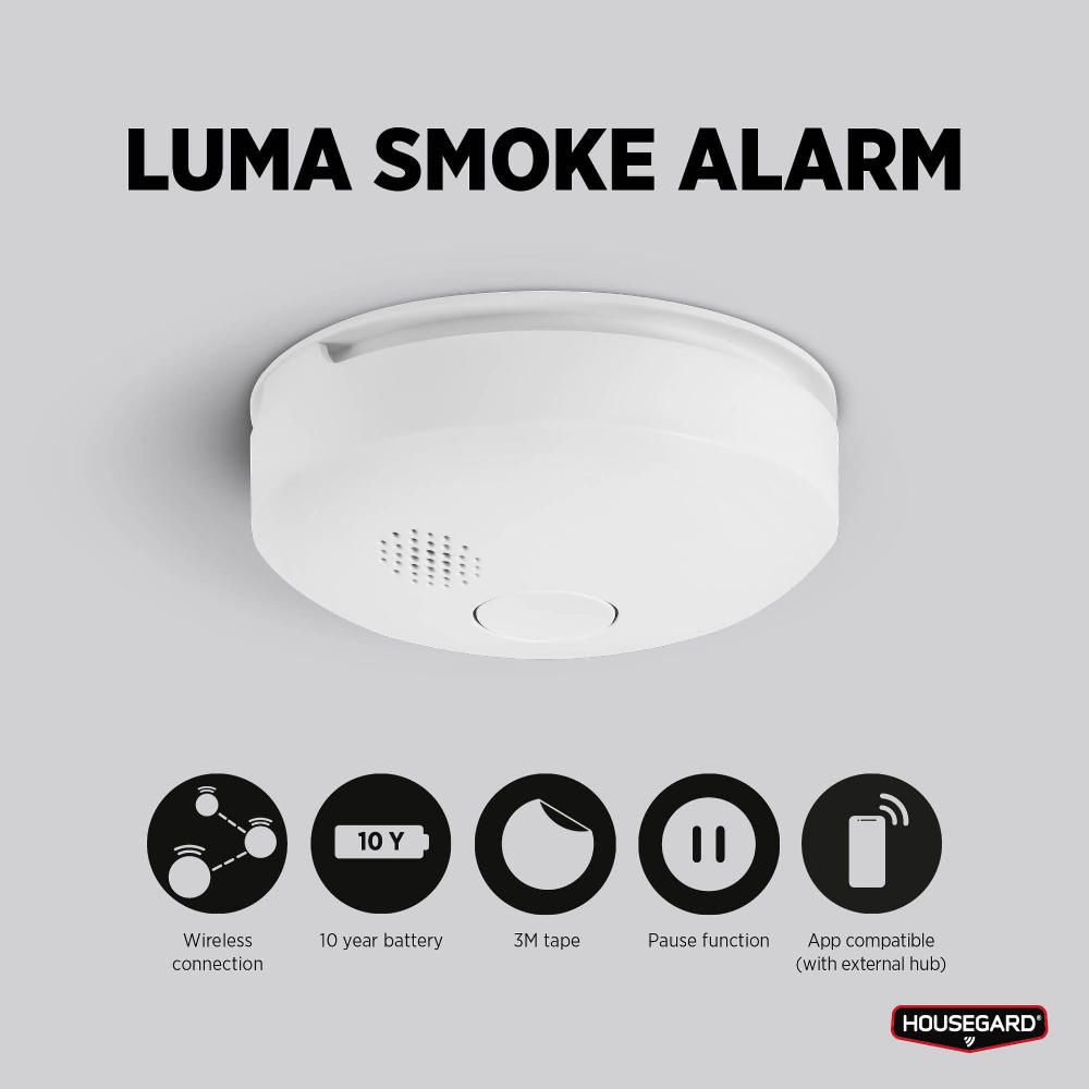 Luma on sarjaan kytkettävä palovaroitin, joka voidaan liittää jopa 40 laitteeseen. Hälyttää yksi, hälyttää kaikki – näin sinua varoitetaan missä tahansa, kun mahdollinen tulipalo syttyy.Vältä akun vaihtoa