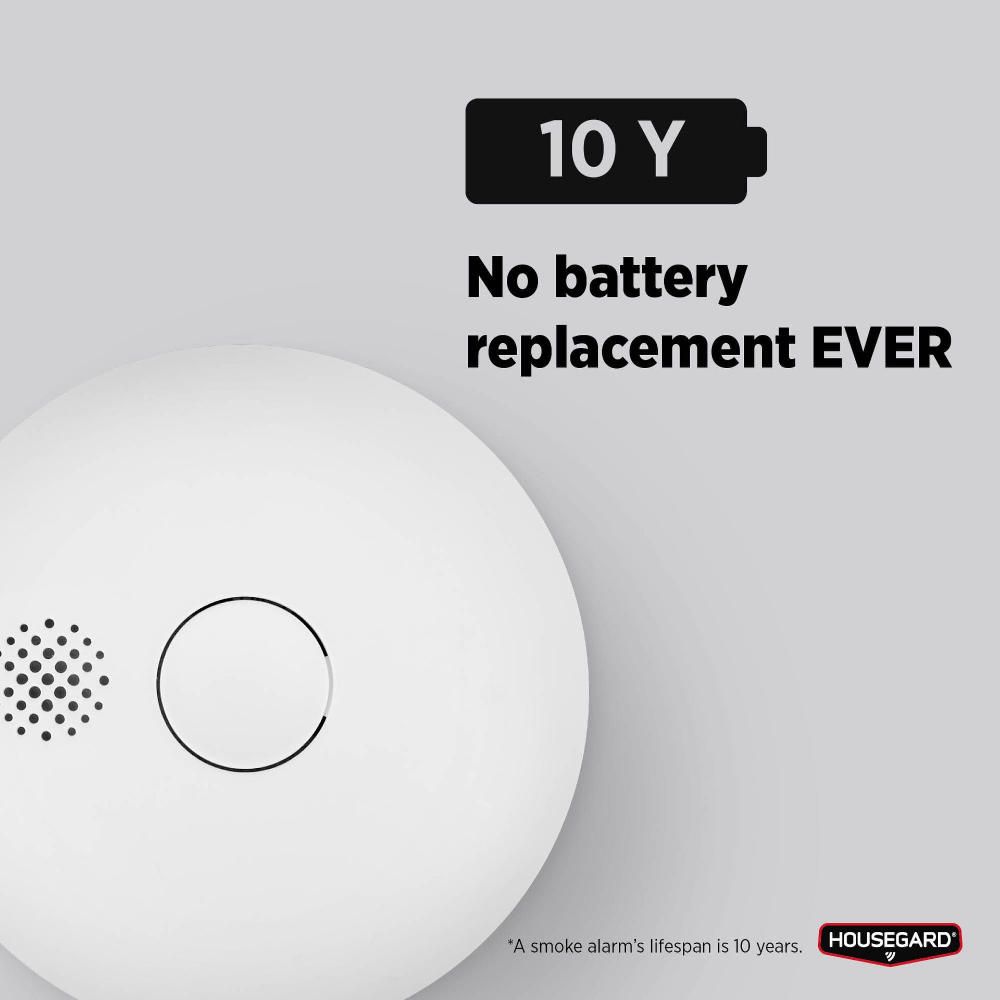 Sisäänrakennetun 10 vuoden akun ansiosta sinun ei tarvitse koskaan miettiä pariston vaihtoa. Sen sijaan, kuten tavallista, vaihdat koko hälyttimen 10 vuoden kuluttua. Kun akku alkaa olla lopussa, hälytin antaa signaalin.Hälytyksen aikana hälytyksen antaneen palovaroittimen molemmat merkkivalot vilkkuvat punaisena. Kun hälytys on sammunut, laukeamisen aiheuttanutta palovaroitinta ei enää voi selvittää.