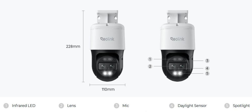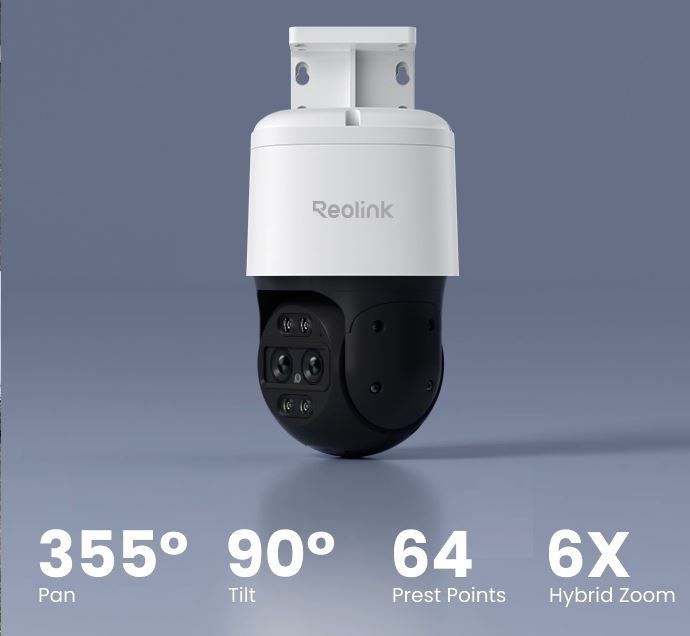 Reolink Trackmix WiFi on täysin uniikki kaksilinssinen PTZ-kamera. Trackmix kykenee uuteen tuplaseurantaan. Siinä toinen linssi katsoo seurattavaa kohdetta laajakuvassa ja toinen zoomattuna. TrackMix -sarjassa on myös uusi 6x hybridi zoomaus. Siinä ensimmäiset 2.8x zoomautuu laajakulmaobjektiivin kuvasta digitaalisesti ja loput teleobjektiivin kautta. Kamera toimii verkkovirralla.Auto-tracking toiminnolla kamera pystyy seuraamaan havaitsemaansa kohdetta, kääntäen kameran kohteen liikkeen mukaan. Seurantatoiminnossa liike toimii horisontaalisti eli vasemmalle ja oikealle. Kameran voi myös asettaa partioimaan esiasennettuihin vapaasti asetettuihin kohteisiin vuoronperään kohdistuen. WiFi-yhteys toimii sekä 2.4 GHz että 5 GHz taajuuksilla. Kamerassa on lisäksi 100 Mb/s nopeuteen yltävä RJ45-liitin Ethernet-kaapelille.
